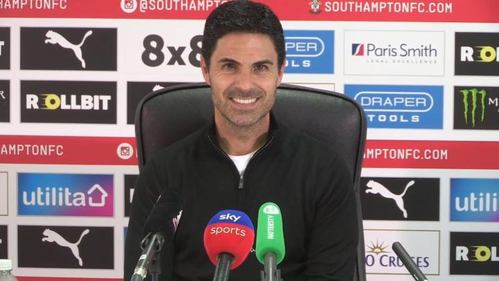 阿森纳主教练阿尔特塔在新闻发布会上,先是对球队在英超末轮客场2-1击败南安普顿的比赛表示满意,他强调了球员们在场上的努力和斗志。他表示,赛季结束时能以一场胜利结束比赛,让他感到非常高兴。他希望球队在离开更衣室时带着积极的能量,为下个赛季做好准备。